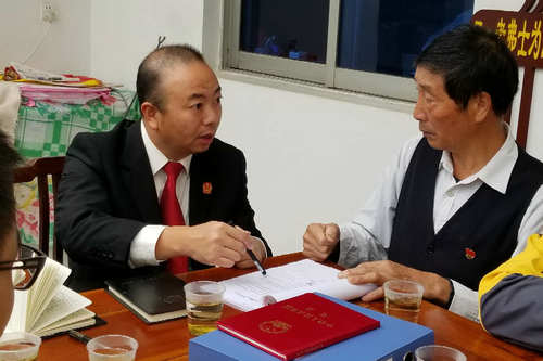 2018年10月22日上午,京口法院谏壁法庭一行前往“老弗士”为民工作室学习交流。老党员刘加录主任向干警们详细介绍了“老弗士”为民工作室的由来、服务内容及价值追求,并分享了工作室成立以来的工作亮点和成果。随后,徐立强庭长就抚养、赡养、婚姻、相邻关系等问题与几位“老弗士”进行了座谈交流,干警们向“老弗士”工作室学习以情动人、以理服人的调解技巧,周伟法官还就个案向“老弗士”咨询了村里的风俗习惯、改制等相关情况。
