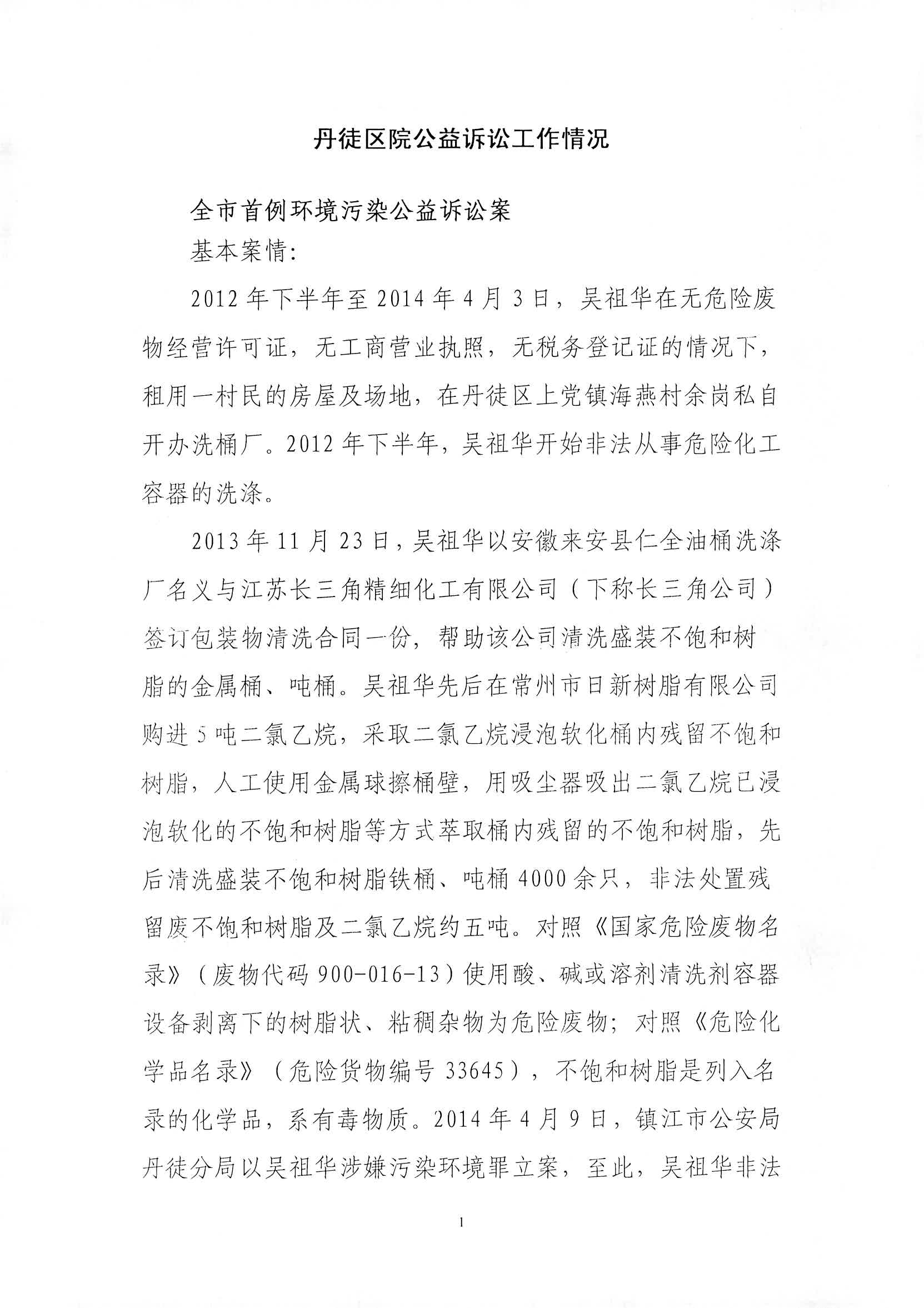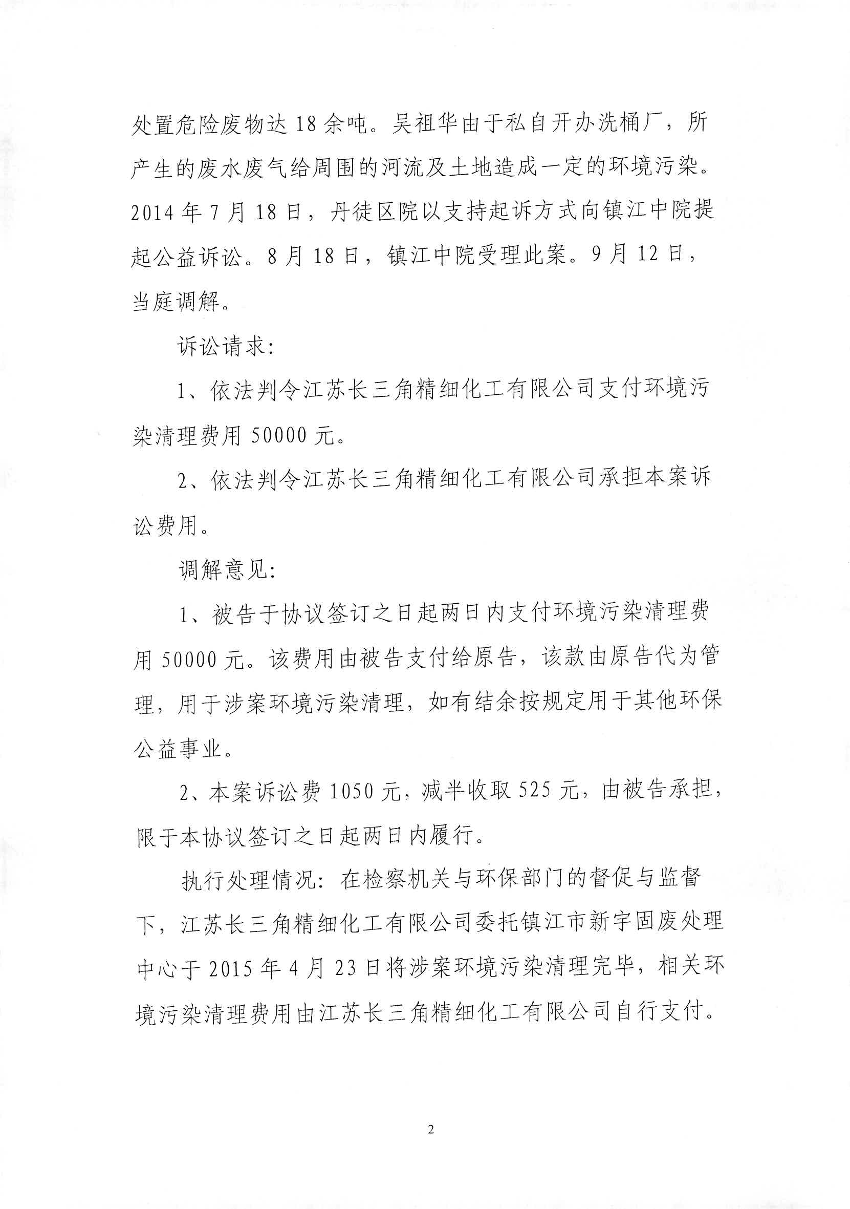 关于原告镇江市生态环境公益保护协会诉被告江苏长三角精细化工有限公司环境污染责任纠纷公益诉讼一案,本院调解结案。现将该案的环境修复执行及资金开支情况的公告如下,详见附件。