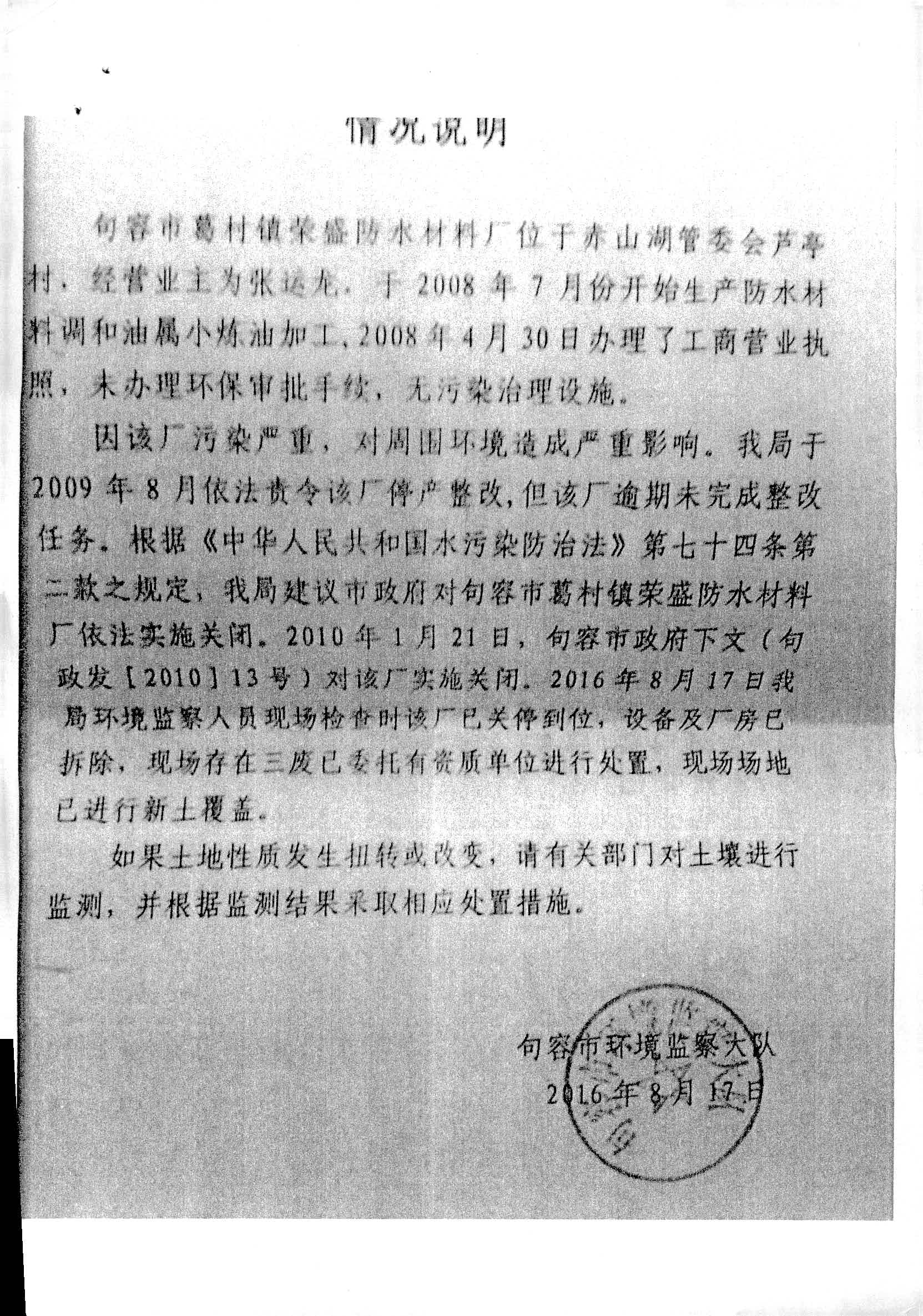 关于原告镇江市生态环境公益保护协会、句容市环境保护局诉被告葛村镇荣盛防水材料厂、张运龙、张茂玉、李庆兰、上海铁路机务综合开发有限公司南京机务分公司、益云晖、丁重光、周小林、于扣强、余龙环境污染责任纠纷民事公益诉讼一案,本院调解结案。现将该案的环境修复执行及资金开支情况的公告如下,详见附件。