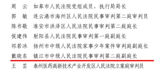 文质彬彬、不温不火、阳光帅气,是大家对他的评价。戴晓东,法学硕士研究生,镇江中院首批入额法官。自2013年办案以来,他在全市民事条线名列前茅,受到上级法院的肯定和人民群众的认可。他是镇江市十佳效能标兵,更先后被最高法院表彰为“全国法院党建工作先进个人”、被省高院表彰为“全省优秀法官”并荣记个人二等功。