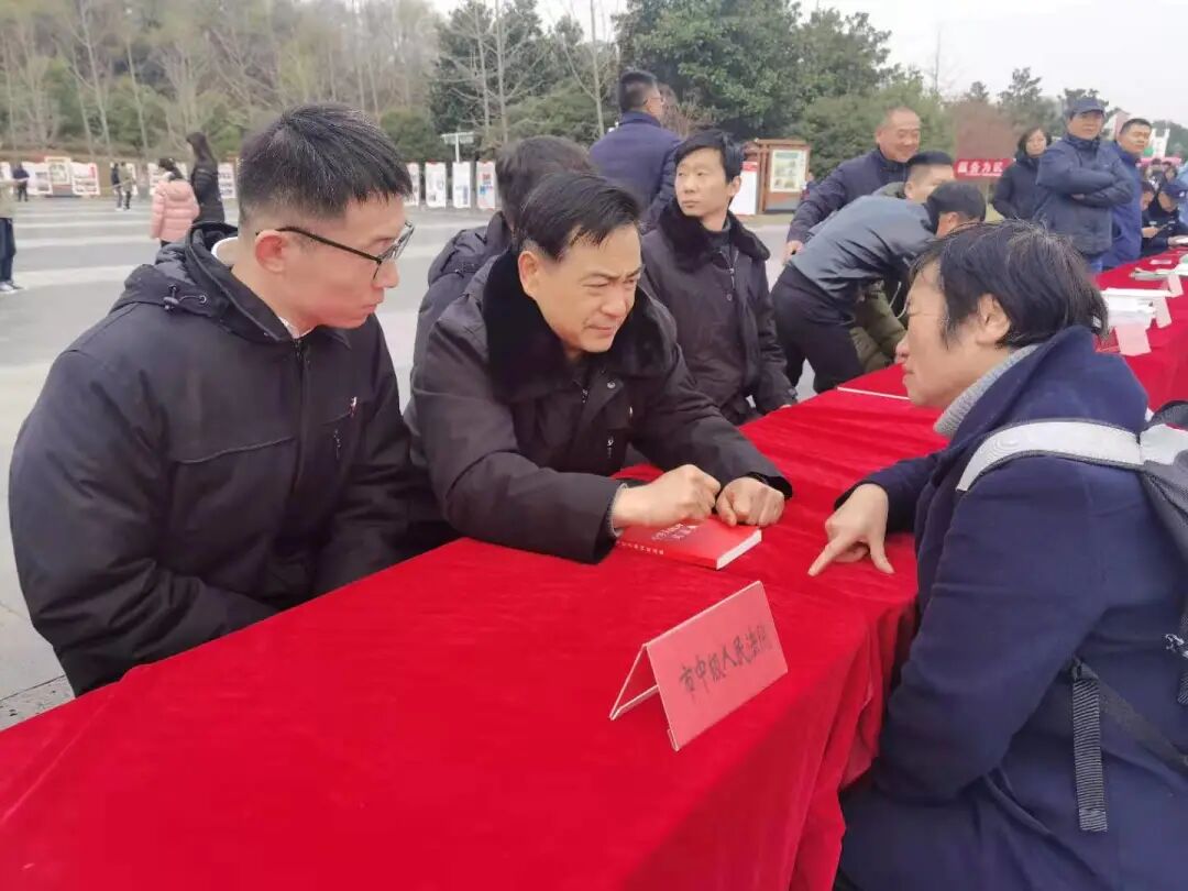 12月5日上午,以“深入学习宣传习近平法治思想,大力弘扬宪法精神”为主题的2020年镇江市“宪法宣传周”主题活动暨“法眼新观察”融媒体平台启动仪式,在南山北入口广场举行。市委常委、政法委书记许文,市人大常委会副主任岳卫平,市政协副主席徐平参加活动。镇江市中级人民法院民五庭法官司马仲华、民四庭法官助理王宁参加广场普法活动,“面对面”为老百姓答疑解惑。