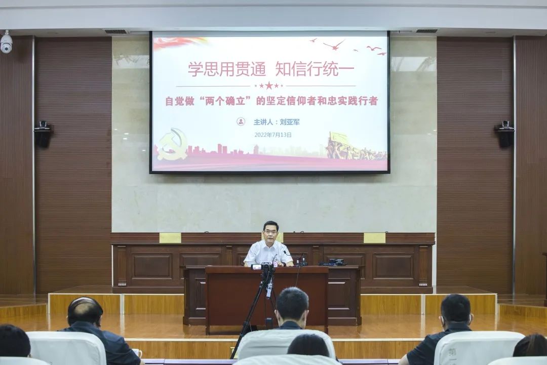 为深入开展“深刻领悟‘两个确立’决定性意义 坚决做到‘两个维护’”主题教育,切实筑牢法院队伍政治忠诚,7月13日上午,镇江中院党组书记、院长刘亚军以《学思用贯通 知信行统一 自觉做“两个确立”的坚定信仰者和忠实践行者》为题,为全院干警作专题授课。
