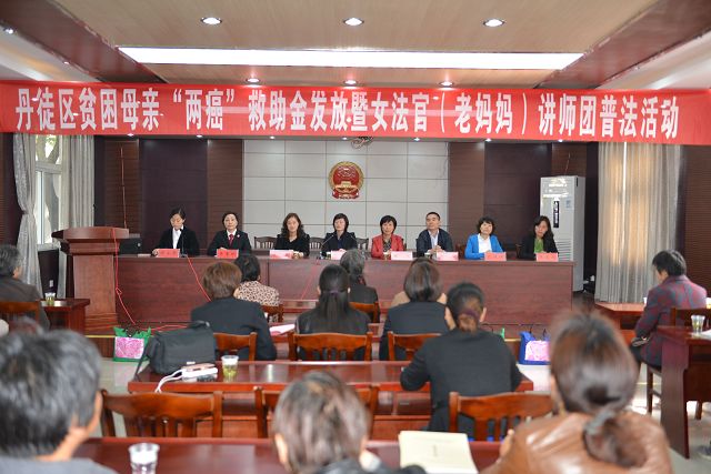 进一步加强普法宣传力度,扩大普法宣传覆盖面,4月29日上午,由丹徒法院联合区妇联举办的“丹徒区贫困母亲“两癌”救助金发放暨女法官(老妈妈)讲师团普法活动”在上党镇政府礼堂拉开帷幕。丹徒区副区长、区妇女儿童工作委员会主任贺丽娟,丹徒法院党组书记、院长张蕾,区妇联主席王珏等主要领导亲临活动现场。