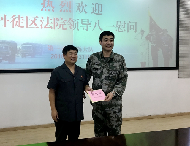 为巩固和加强军政军民团结,在“八一”建军节即将来临之际,丹徒法院院领导先后带队前往区人武部、辖区某驻地部队走访慰问,为他们送去慰问品及节日祝福。