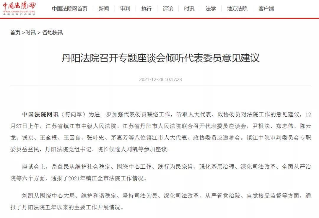 中国法院网等:丹阳法院召开专题座谈会倾听代表委员意见建议