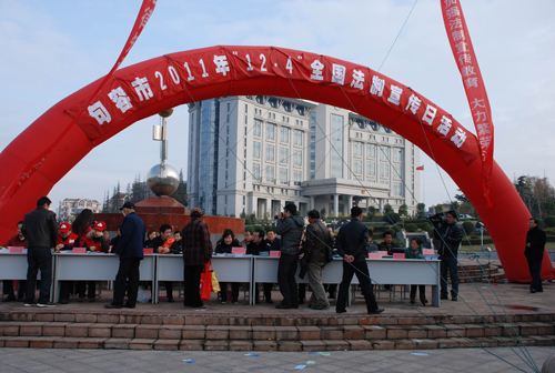 活动组织了法院、检察院、公安局、住建局、工商局等20个部门的60多名工作人员参加。活动现场各单位结合自身职能,开展与百姓息息相关的法律法规的宣传和咨询,现场接受群众的投诉,分发了《物权法》、《婚姻法》、《消费者权益保护法》等宣传资料2000余份,广场电子显示屏上滚动不间断播放“六五”普法宣传标语,并举行了“六五”普法图片成果展,吸引了众多市民驻足观看。