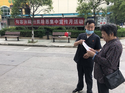 句容法院扫黑办工作人员走进梅花小区开展扫黑除恶宣传活动