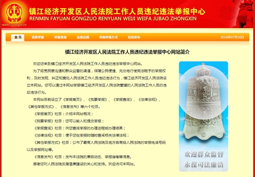 举报网站的网址为http://jubao.court.gov.cn/AB7,举报人既可以登录人民法院工作人员违纪违法举报中心主网站进行投诉举报,也可以直接登录该院网站进行投诉举报。网站共设置举报首页、我要举报、举报查询等6个栏目,主要受理开发区法院各部门及其法官和其他工作人员的举报。为确保网站高效和保密运行,该院建立专人、专机、专房制度,由专人使用专机对举报网站进行管理,法院将在10日内对举报问题进行答复。
