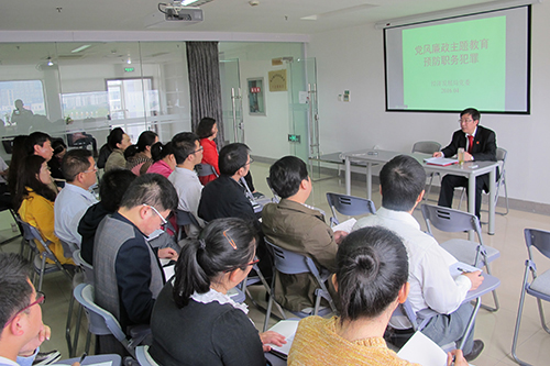 在讲座中,吴强从“什么是职务犯罪、职务犯罪的常见形态、反腐败新趋势和预防犯罪措施”等三个方面告诫大家要老老实实做人、干干净净干事。为了更好、更透彻的向现场人员宣讲法律知识,吴强分别从贪污罪、挪用公款罪、受贿罪等的罪名解析、立案标准、处罚依据,进行讲解,并以法院审理过的典型案例进行普法教育。他特别针对公务活动中接受礼物不交公的定性、挪用公款罪和贪污罪的主要区别等问题一一作了解释说明。