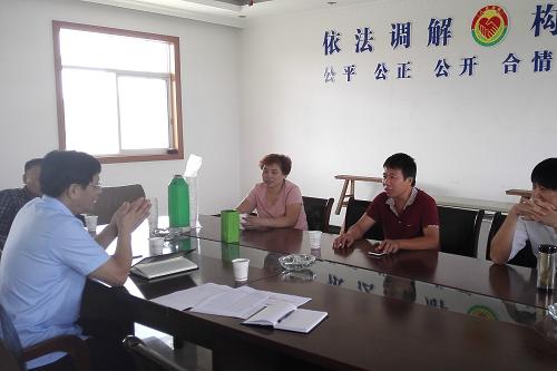 9月19日上午,开发区法院党组成员、办公室主任钱晓龙该院综治联系点姚桥镇伏漕村走访,与村党支部书记张保国、副书记高强等人进行座谈。