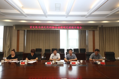 2018年7月6日下午,市级重点课题《宜文化与法文化融合创新研究》开题会在镇江经济开发区人民法院召开。镇江社科联副主席刘业林、镇江新区宣传部副部长陶伟、江苏科技大学教授魏敏及开发区法院党组书记、院长卜士凡出席本次会议。