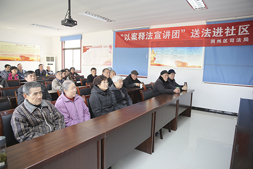 日前,润州法院金山湖人民法庭庭长余波同志来到宝塔路街道运河社区开展法治宣讲活动,为100余名社区居民讲解婚姻家庭方面的法律知识,对居民关心的家庭纠纷的法律问题进行了现场解答,取得了良好的普法效果。