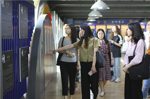 在讲解员的带领下,一行人首先来到的是“启园”。碑刻廊亭上的中华传统美德故事,法文化柱上的古今中外法律经典,一手持天平、一手持宝剑的正义女神像……让大家在徒步观赏中初步感受到了润州法院浓厚的文化氛围。