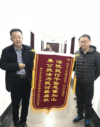 日前,数位群众来到扬中法院执行局并送来八面锦旗,分别送给该院执行局、立案庭等多名干警。