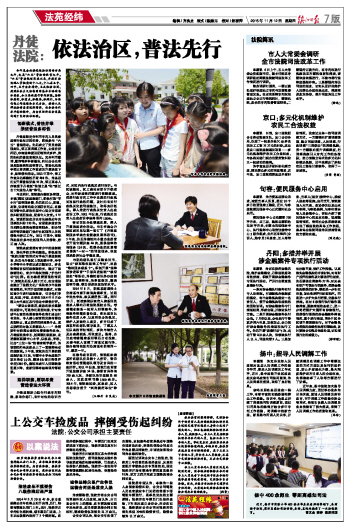 该院高度重视对青少年的法制教育,强化学校主阵地建设。积极采取“院校共建”的形式对学生开展法制教育,先后与丹徒区上党高级中学、辛丰小学等中小学校达成共建协议,多名资深法官担任法制副校长,建立了法制辅导站、青少年维权信箱、“护苗行动”QQ群。在办案经费紧张的情况下,该院先后投入数十万元,在宝堰法庭建立了法园文化广场和青少年法制教育园地,利用开放的管理模式,对辖区青少年进行法制教育,引导他们学法、知法、守法,此举在2014年9月全国人大代表江苏行活动中深受好评。